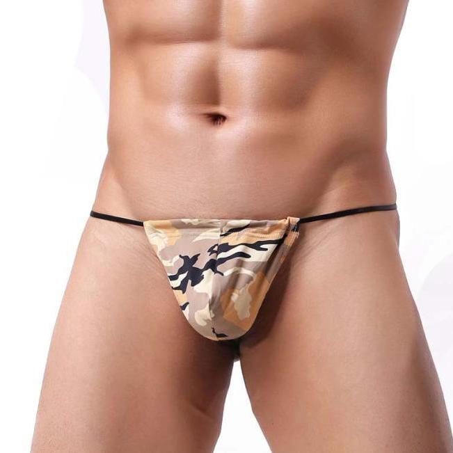 Features: For the minimalist, this G-string design includes a pouch made from soft poly fabric printed with several camouflage prints.